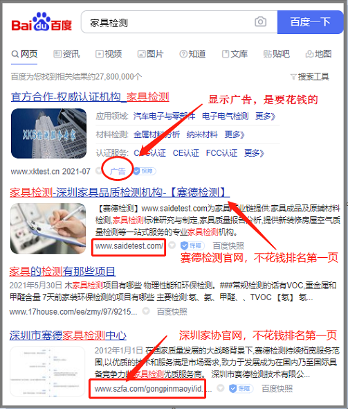 2-1、關鍵詞排名:白帽方法,不花錢,通過網站頁面優(yōu)化后符合百度搜索引擎排名規(guī)則,排名靠前,時效長久。會員免費。(效果如下圖)