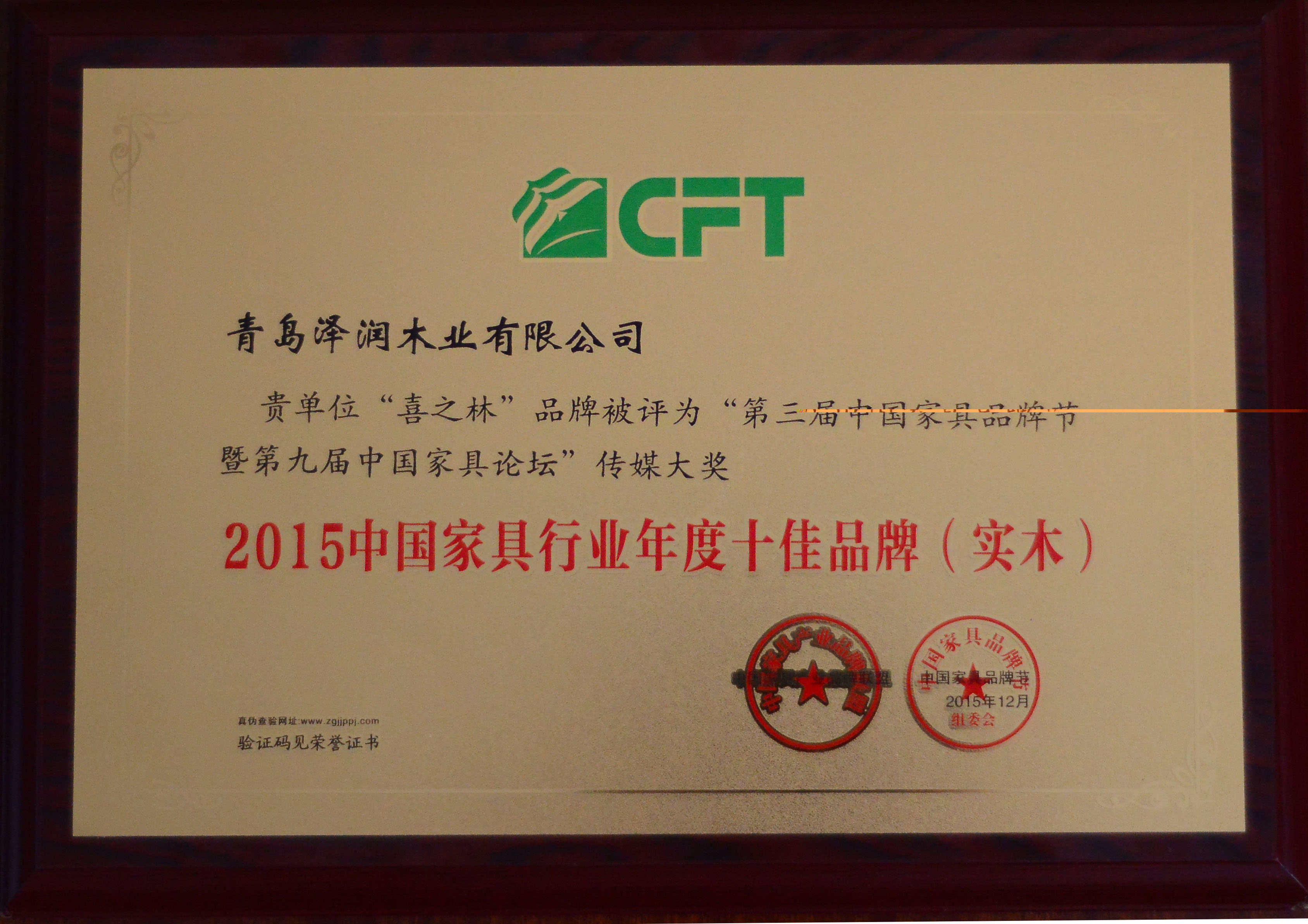 2015年中國(guó)家具行業(yè)年度十佳品牌(實(shí)木)