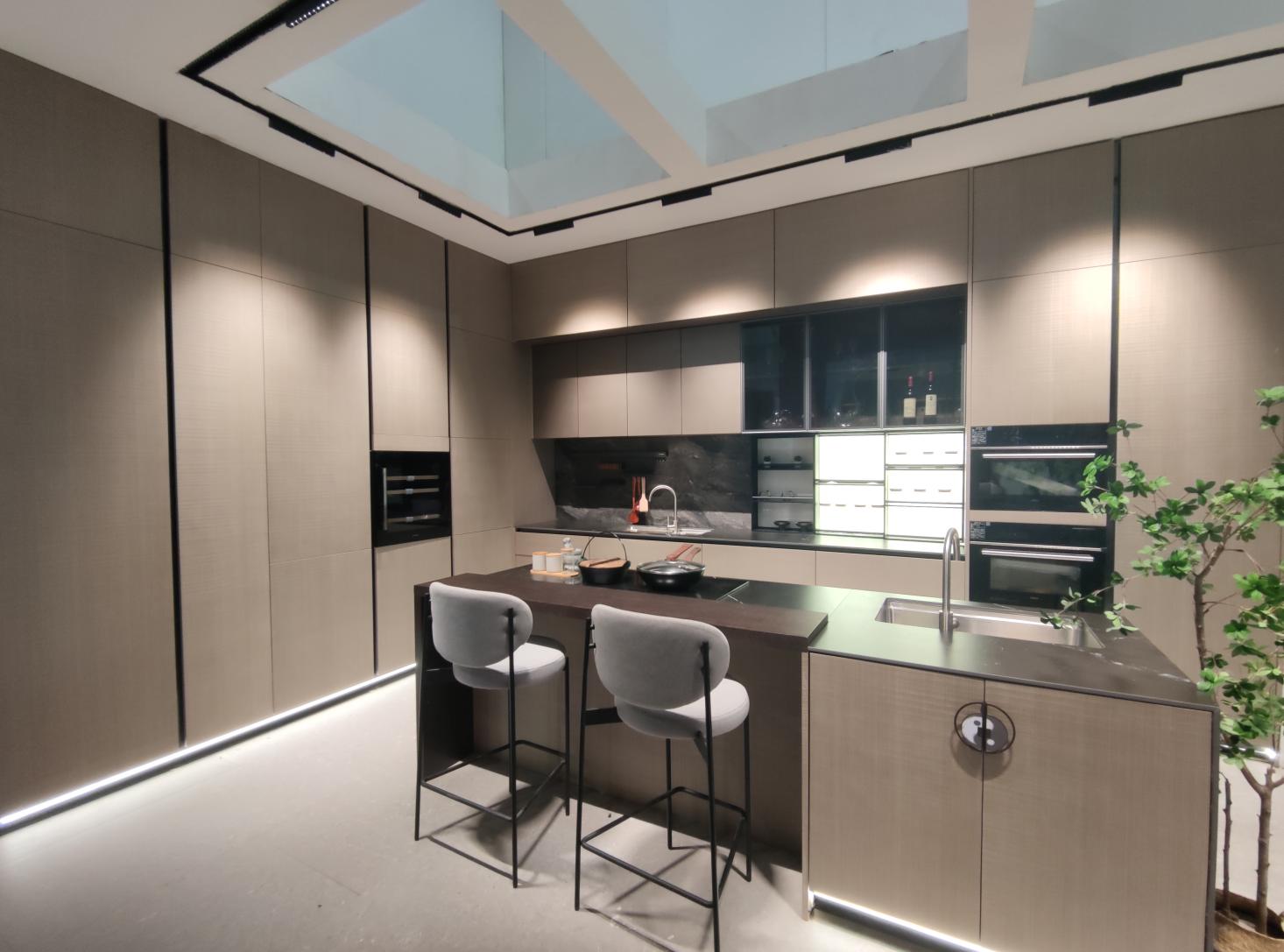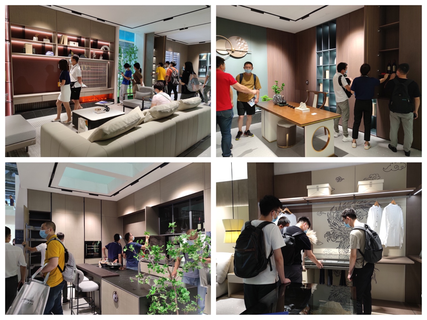 前來觀展咨詢洽談的人絡(luò)繹不絕,展廳的布局分別以五行文化系列的櫥柜、客廳、餐廳、茶室、臥室為場(chǎng)景設(shè)計(jì)。