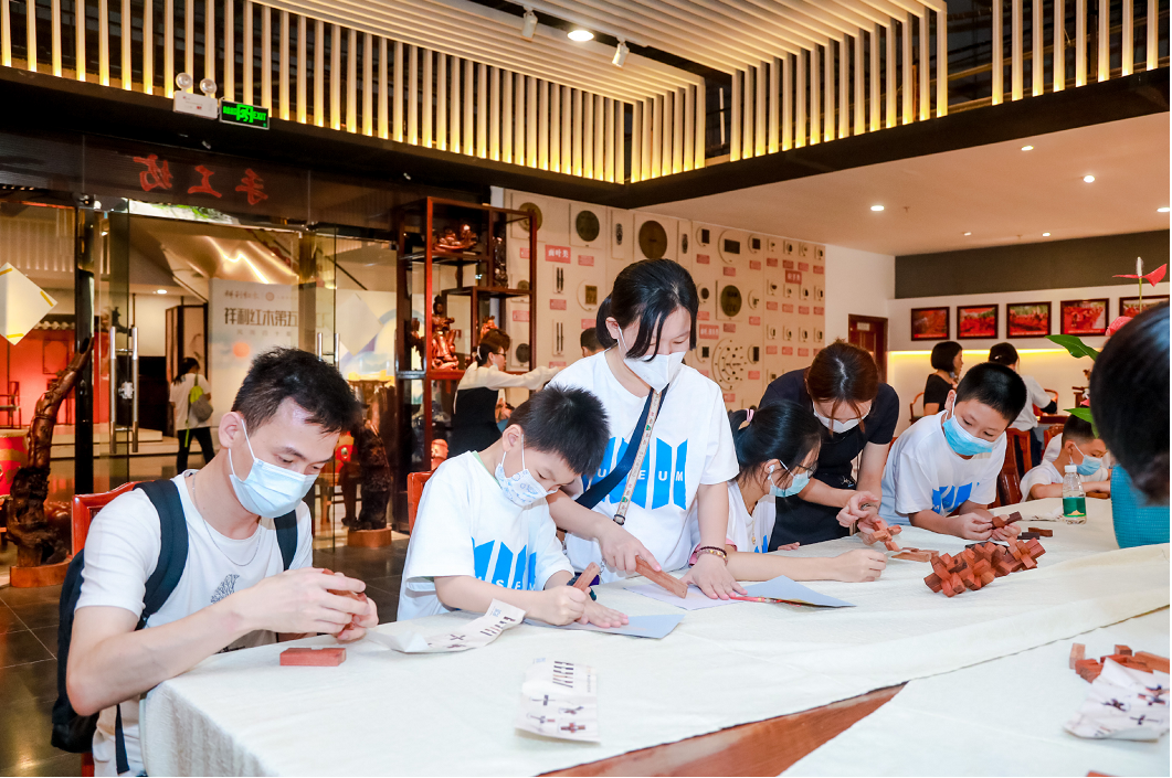 10余組親子家庭參加市民巡禮活動,近距離了解紅木的發(fā)展歷史、種類和分布、挑選辨別及紅木家具制作工藝等消費知識。大家還在專業(yè)老師的指導下動手制作了榫卯結構的小家具,體驗傳統(tǒng)榫卯工藝,感受紅木文化,感悟工匠精神。