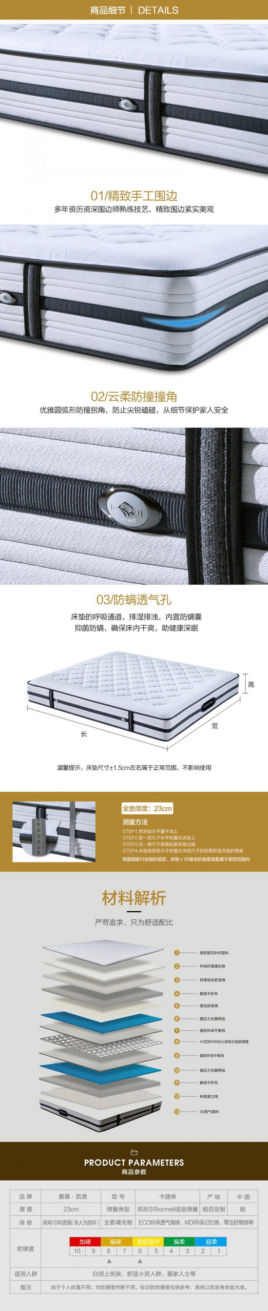 愛(ài)慕凱恩雙人席夢(mèng)思3D透氣 冬夏兩用邦尼爾彈簧床墊