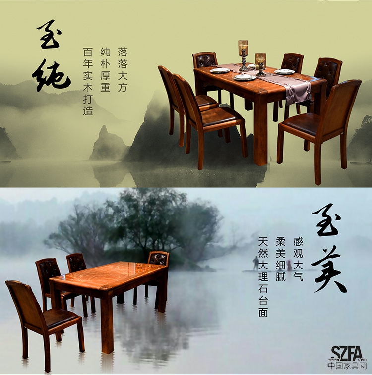 博豐家具中式具天然大理石臺面紫金梨木實木餐桌餐桌椅 頭層真皮