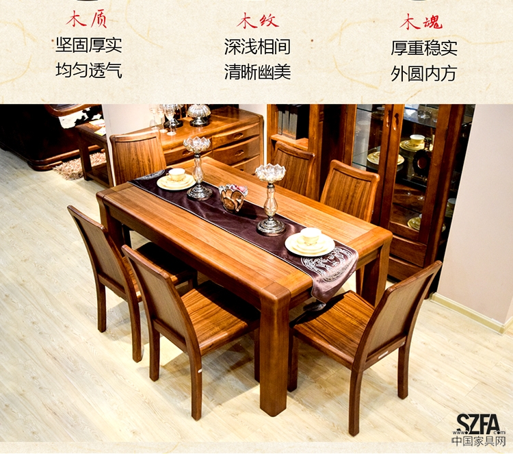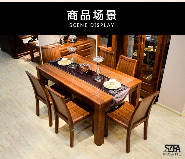 博豐家具餐桌餐桌椅組合6人餐桌實(shí)木家具 中式實(shí)木餐桌組合家具