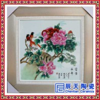 景德鎮(zhèn)辰天陶瓷有限公司生產(chǎn)定做陶瓷工藝瓷板畫、高檔手繪陶瓷瓷版畫:在高溫燒制的瓷板上手工繪制圖案,再經(jīng)過二次高溫燒制而成。是家居大廳中堂、臥室、墻壁、酒店、廳堂、主題公園陶瓷壁畫等裝飾的首選。它具有以下優(yōu)點: