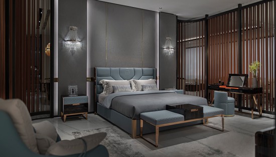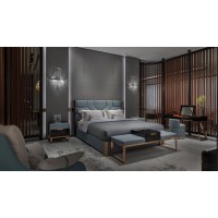 這款床是我們非常暢銷的產(chǎn)品,整體造型纖細(xì)精致、線條簡單。珊瑚藍(lán)色彩的運(yùn)用令人放松,床頭的幾何造型軟包在提供了美觀的視覺體驗(yàn)之余,更增添了舒適感,您可以感受一下,并且這款床配套的尾凳引用了時(shí)尚的菱形格設(shè)計(jì),融入金屬等元素,打造了一個(gè)完美的臥室空間。