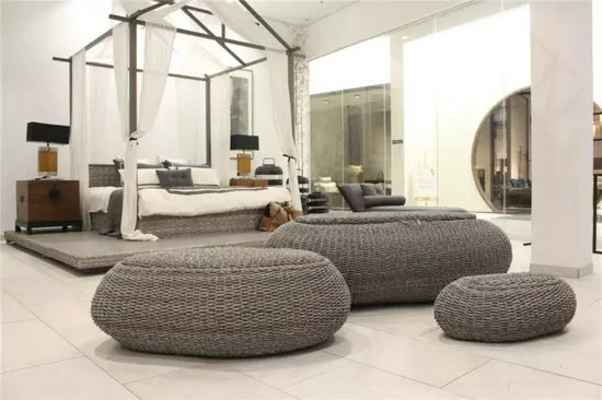 接下來我們來到DOMO nature,踏入這個空間,浮躁的心慢慢變得平靜下來,你會感到非常愉悅、放松??臻g里布滿了很多藤制的家具,結(jié)合干脆利落的金屬線條,特殊的材料讓他們完全hold得住風(fēng)吹日曬雨淋的天氣,尤其適合戶外空間。賴老師認為家具也是具有生命力的,它能通過一些材質(zhì)和造型的表達與人產(chǎn)生親密無間的關(guān)系。沉浸在DOMO nature品味空間里,隨手一拍就是風(fēng)景。
