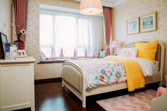 為契合女孩氣質(zhì),兒童房選擇純白底色,加以柔嫩粉與加州黃的床品、飾品,令小空間明亮且開(kāi)闊,為孩子打造繽紛成長(zhǎng)世界。