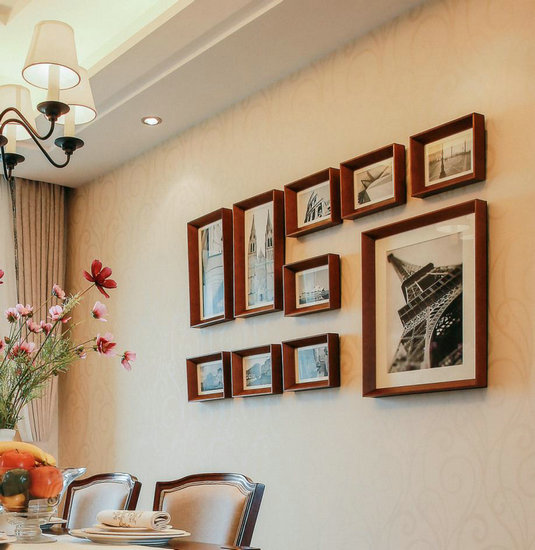 在面積不足10㎡的餐廳,設(shè)計(jì)師借助錯(cuò)落式陳列方式,將3種尺寸的建筑墻畫排列組合,豐盈小空間層次又不失秩序。自由放入相片時(shí),這里將成為一道家的風(fēng)景線。