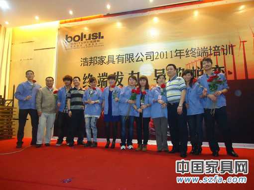 核心提示:佛山浩邦(寶露斯)家具于3月11日至3月15日舉行2011年第一場的家具導購培訓。來自全國各地近200余名終端導購與經(jīng)銷商在佛山南海區(qū)里水鎮(zhèn)匯美酒店參加了為期四天四晚的導購培訓。