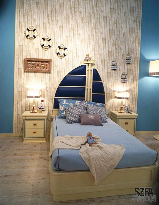 藍(lán)色搭配航海元素,便構(gòu)成了一組具有開(kāi)拓精神的兒童系列家具。