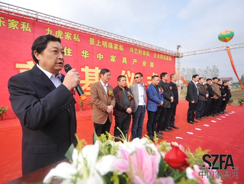 奠基儀式上,李江鴻代表市政府致辭。5家武漢家具企業(yè)代表、九虎家私有限公司董事長(zhǎng)孫明紅發(fā)言, 湖北省家具協(xié)會(huì)會(huì)長(zhǎng)秦志江、華中家具產(chǎn)業(yè)園負(fù)責(zé)人胡曉寒、武漢市化工區(qū)管委會(huì)副主任錢方信在奠基儀式上講話。