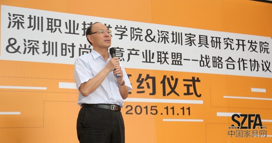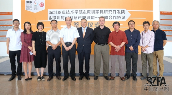2015年11月11日,深圳職業(yè)技術(shù)學院與深圳家具研發(fā)院、深圳時尚創(chuàng)意產(chǎn)業(yè)聯(lián)盟戰(zhàn)略合作簽約儀式隆重舉行。深圳職業(yè)技術(shù)學院黨委書記、校長劉洪一,深圳職業(yè)技術(shù)學院科研處處長劉冬、藝術(shù)設(shè)計學院院長周利群、副院長帥斌、劉君及學校師生代表參加了本次活動,深圳時尚創(chuàng)意產(chǎn)業(yè)聯(lián)盟主席侯克鵬、CEO Jacob應邀出席。