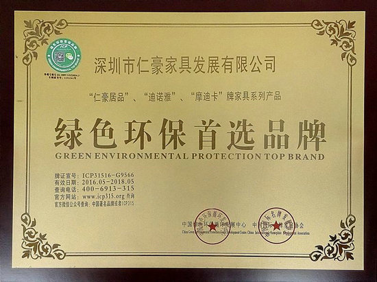 近日,仁豪居品及其旗下品牌迪諾雅、摩迪卡榮獲由中國綠色環(huán)保循環(huán)發(fā)展中心聯(lián)合中國國際名牌發(fā)展協(xié)會頒發(fā)的“綠色環(huán)保首選品牌”證書,這是繼獲評“家居綠色環(huán)保領(lǐng)跑品牌”、“中國綠色家具優(yōu)品”等榮譽后,仁豪居品在綠色環(huán)保方面獲得的又一重大榮譽。
