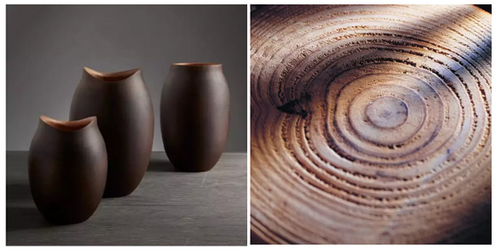溫潤的陶瓷、剔透的玻璃、純樸的木材,不同的肌理化身不同氣質(zhì)的花器,再跟色彩綜合作用,融為一種整體的張力,變幻出更多可能性?! ?/p>