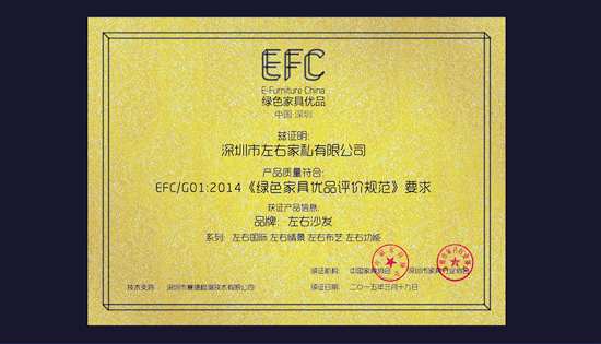 2014年,當深圳市家具行業(yè)協(xié)會主導下的中國家具環(huán)保檢測最高標準——“中國綠色家具優(yōu)品”工作的啟動,對于專注沙發(fā)制造與幸福文化的左右沙發(fā)而言,這無疑是一次企業(yè)升級的機遇。
