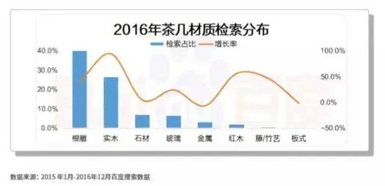 實(shí)木家具的材質(zhì)搜索分布,實(shí)木、布藝、真皮、藤椅、金屬等不同材質(zhì)家具的搜索分布及增長情況;