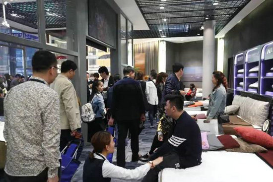 雅露斯國(guó)際此次參加深圳國(guó)際家具展,以一張“0甲醛”的負(fù)氧離子科技床墊在展會(huì)上一鳴驚人。許多消費(fèi)者和經(jīng)銷商都是慕名而來(lái),現(xiàn)場(chǎng)更是一度火爆到限名額體驗(yàn)。