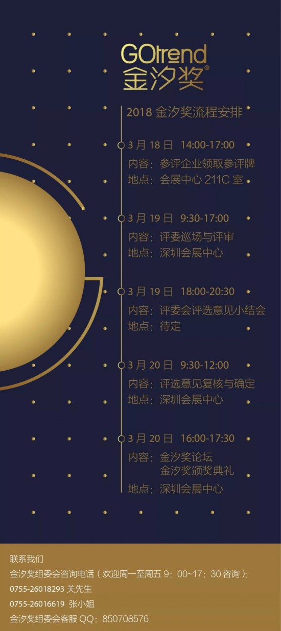 GOtrend 金汐獎(jiǎng)是于設(shè)計(jì)之都深圳發(fā)起的家居設(shè)計(jì)領(lǐng)域?qū)I(yè)獎(jiǎng)項(xiàng),是深圳時(shí)尚家居設(shè)計(jì)周暨深圳國(guó)際家具展鼓勵(lì)參展企業(yè)設(shè)計(jì)創(chuàng)新的一個(gè)榮譽(yù)平臺(tái),理念為“激發(fā)創(chuàng)新、獎(jiǎng)勵(lì)創(chuàng)新和傳播創(chuàng)新”。該獎(jiǎng)項(xiàng)每年評(píng)定一次,由深圳市家具行業(yè)協(xié)會(huì)與深圳家具研究開(kāi)發(fā)院組織家具及設(shè)計(jì)界專家學(xué)者和著名設(shè)計(jì)師擔(dān)任評(píng)委,對(duì)參賽作品的開(kāi)發(fā)理念、創(chuàng)新水平、設(shè)計(jì)表現(xiàn)等指標(biāo)進(jìn)行綜合評(píng)定后,評(píng)選出本年度優(yōu)秀作品。