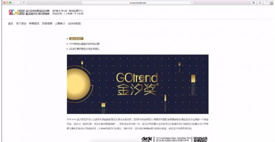 方式3:進(jìn)入深圳國(guó)際家具展官網(wǎng),下拉點(diǎn)擊“金汐獎(jiǎng)”模塊進(jìn)入報(bào)名頁(yè)面。
