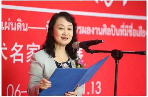 ▲ 中國駐泰國大使館文化參贊、曼谷中國文化中心主任藍素紅女士致辭:對本次展覽給予極高評價
