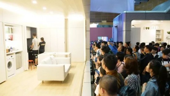 通過模特們的演示,觀眾可以很直觀的看到一個(gè)僅有32㎡的小公寓是如何毫無壓力的承載度假休閑時(shí)對公寓空間的各種需求。