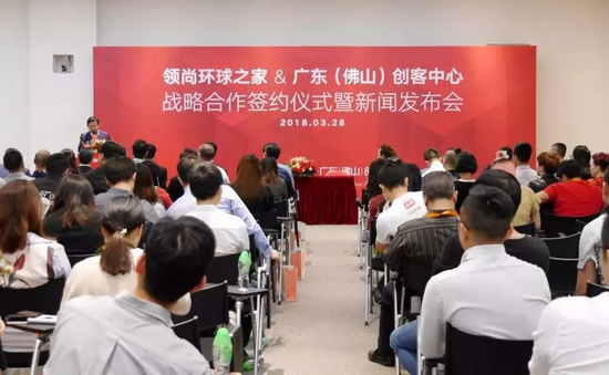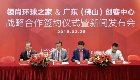 領(lǐng)尚環(huán)球之家·中國區(qū)總部總經(jīng)理張智超與廣東(佛山)創(chuàng)客中心總經(jīng)理高洪波進(jìn)行簽約