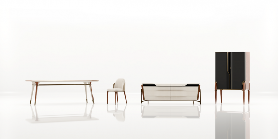 “故其華表則鎬鎬鑠鑠,赫奕章灼若日月之麗天也”——J&A杰恩設計董事長姜峰先生基于中國古代皇家景福殿群的閃耀之象,以及中國明時文人墨客最愛的一款紫檀無束腰“裹腿羅鍋賬”畫桌為靈感源泉,創(chuàng)作出一組造型輕盈流暢、時尚現代又處處蘊涵著東方意味的餐廳系列家具,故取名為Melting Light -“鑠”。