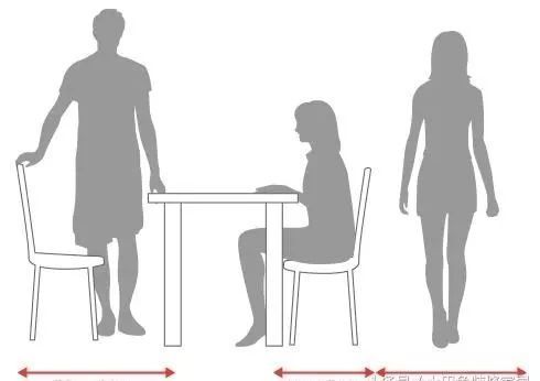 人坐在椅子上的的寬度約為50cm,將椅子拉開坐下時(shí)所需的寬度約為80cm,椅子后面還需要留出至少60cm的通道才能滿足餐廳的使用空間。
