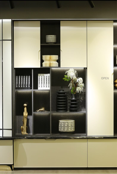 在今年的米蘭國際家具展上,現(xiàn)代輕奢風格成為了家裝設(shè)計主流趨勢之一。索菲亞順應(yīng)潮流趨勢,推出了一系列輕奢風產(chǎn)品。在設(shè)計方面,整體線條上保留了極簡風線條的利落,在極簡風設(shè)計基礎(chǔ)上加入了金色、金屬、烤漆等元素營造出輕奢感。