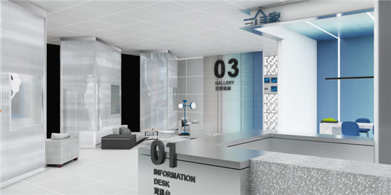 洽談區(qū):展廳第二站為三維洽談區(qū),洽談區(qū)內(nèi),特殊展柜設(shè)計不僅吸睛,更因獨(dú)特設(shè)計形式,使得整個空間形成時尚有趣的隔間,客戶在這休息洽談的同時,也能一覽展廳各處的設(shè)計亮點(diǎn)。