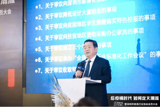 深圳家協(xié)作為中國家具行業(yè)核心組織,是引領產(chǎn)業(yè)發(fā)展的重要力量。會員大會現(xiàn)場,尤國忠會長為我們?nèi)娉尸F(xiàn)深圳家協(xié)的各項作為,展示作為核心組織的行業(yè)責任與社會擔當。
