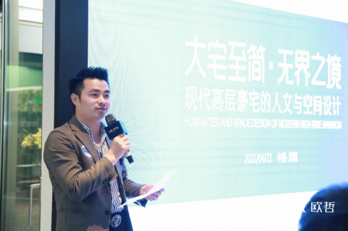 尚邦創(chuàng)意事務(wù)所創(chuàng)始人/設(shè)計總監(jiān)潘旭強先生通過展示和解析自己的豪宅設(shè)計代表作品,分享了從業(yè)多年的設(shè)計心得。