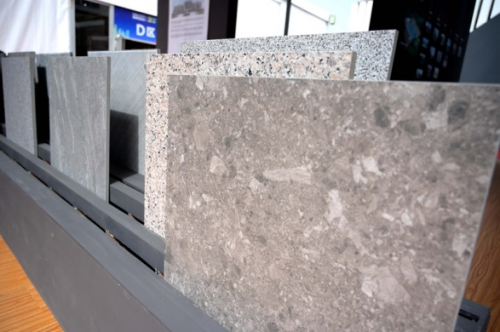 通過合理的布局,不但展示了代表品牌高度的巖板新品,還囊括了崗巖系列、防滑磚系列、仿石材/木材系列等。