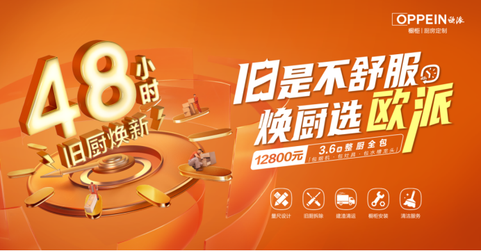 針對(duì)部分需要對(duì)舊廚部分改造的用戶(hù),歐派櫥柜48小時(shí)舊廚煥新服務(wù),從量尺設(shè)計(jì)開(kāi)始,到舊廚拆除、櫥柜安裝、衛(wèi)生清潔等流程結(jié)束,整個(gè)改造工期可在48小時(shí)內(nèi)快速完成,3.6米整廚全包僅需12800元,周末兩天就能讓舊廚房大變樣。