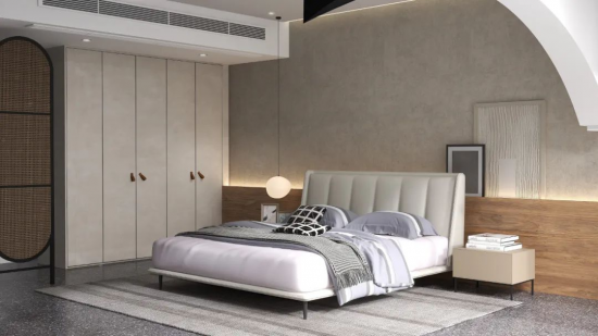 靜謐祥和的臥室空間,CBD家居·智慧 | Z093軟床的米白帶來舒緩的觀感體驗(yàn),別具浪漫風(fēng)情,豎紋拉扣呈現(xiàn)床屏的設(shè)計(jì)美感,恰到好處的角度設(shè)置,靠感更舒適。
