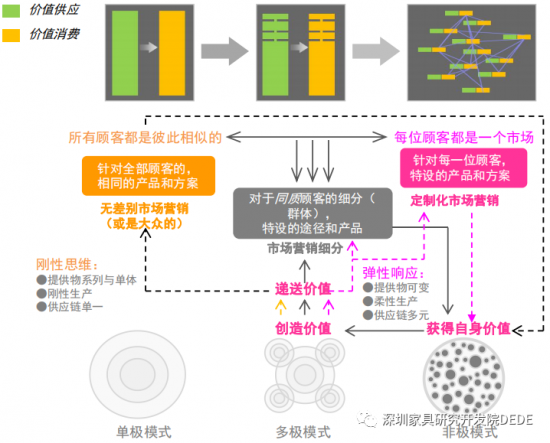 描繪家具產(chǎn)品在終端交付的進(jìn)化軌跡,可以知其所以然,以便看清、確認(rèn)與堅定未來的發(fā)展方向,減少猶豫、彷徨與無謂的折騰。在此過程中,尚有很多細(xì)分領(lǐng)域有著不同的模式,本文只界定在OBM性質(zhì)下終端企業(yè)所面對的民用主流市場。