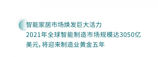TrendForce集邦咨詢研究顯示,推升2021年全球智能制造市場規(guī)模至3050億美元,預期至2025年有望達4,500億美元,年復合成長率達10.5%,將迎來制造業(yè)黃金五年。受新冠疫情影響,數(shù)字化轉(zhuǎn)型加速,以及遠端作業(yè)、自動化等需求提升,并攜帶5G、深化AI技術(shù)等加值服務(wù),隨著信息技術(shù)的迅速發(fā)展和使用智能家居家庭的增加、智能家居市場將煥發(fā)巨大的活力。