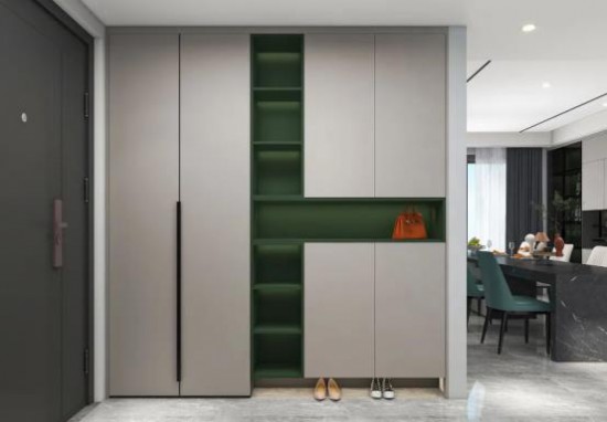開門入室,視野敞亮疏闊。到頂玄關柜設計,利落的線條營造空間的整潔觀感,摒棄繁雜的裝飾,井然有序的收納分區(qū),開合有致,奠定空間的現(xiàn)代感基調。