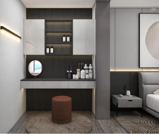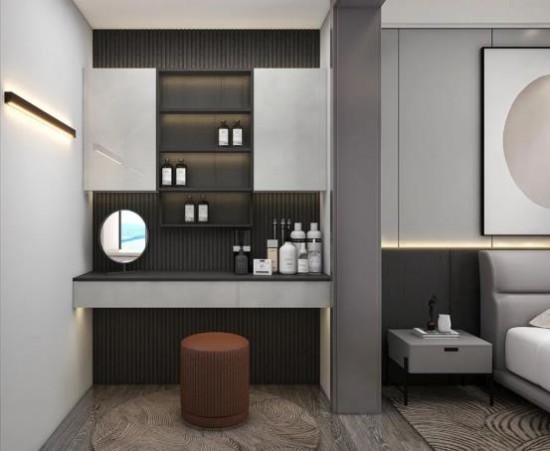 梳妝臺的智能電動收納柜,外形簡約,電動下拉,隱藏儲物容量更大,保持桌面整潔清爽,賦予空間科技感,讓生活更加便捷。CBD家居·QES56梳妝凳,靈動小巧,讓坐感體驗更加柔軟舒適。