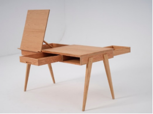 Jonathan的業(yè)余時間用在繪畫和育兒上,他想設(shè)計一款美觀而多功能的家具,在這個安靜的空間里,可以花時間搞創(chuàng)意,也可度過溫馨的家庭時光。這張優(yōu)雅的書桌有兩個蓋板,每個蓋板朝不同的方向打開,這樣可以變成兩個下面帶有存儲空間的畫架,抽屜中巧妙地隱藏著一個畫架托盤。燕尾榫接頭與抽屜側(cè)面鏈接在一起,彎曲的邊緣由薄的單板貼面制成。Jonathan之所以選擇美國紅橡木,是因為它的顏色多樣——由淡紅褐色至淡餅干色,以及它充滿活力的紋理。