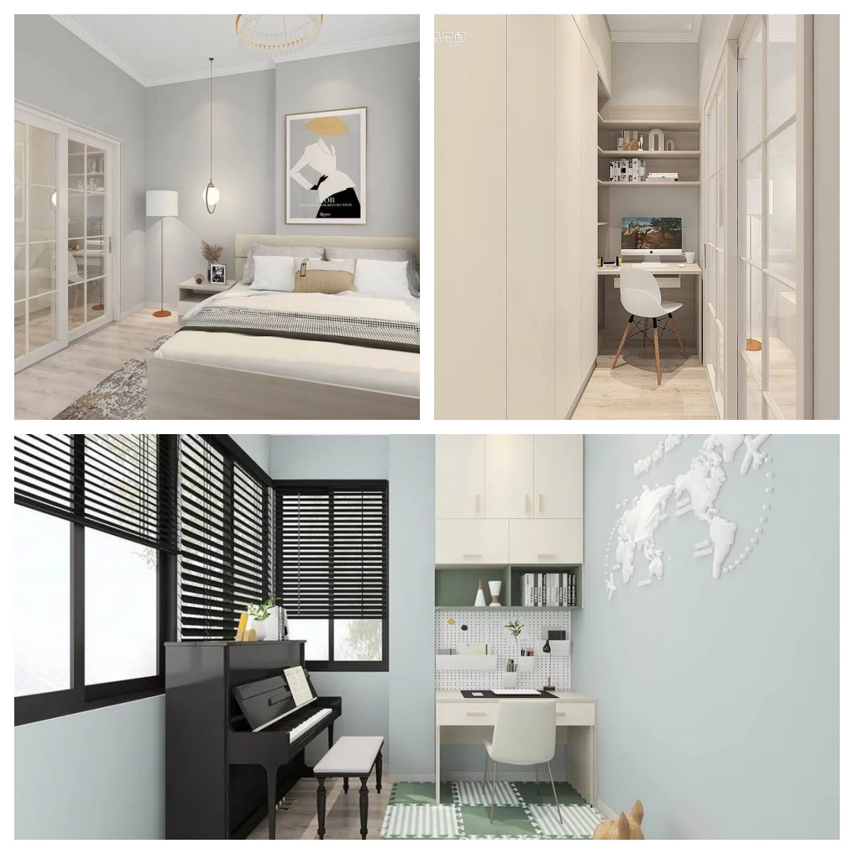 于是,設(shè)計師巧妙地在衣帽間隔出來一塊游戲天地,并裝上隔音效果很棒的推拉門。讓客戶非常滿意和驚喜。