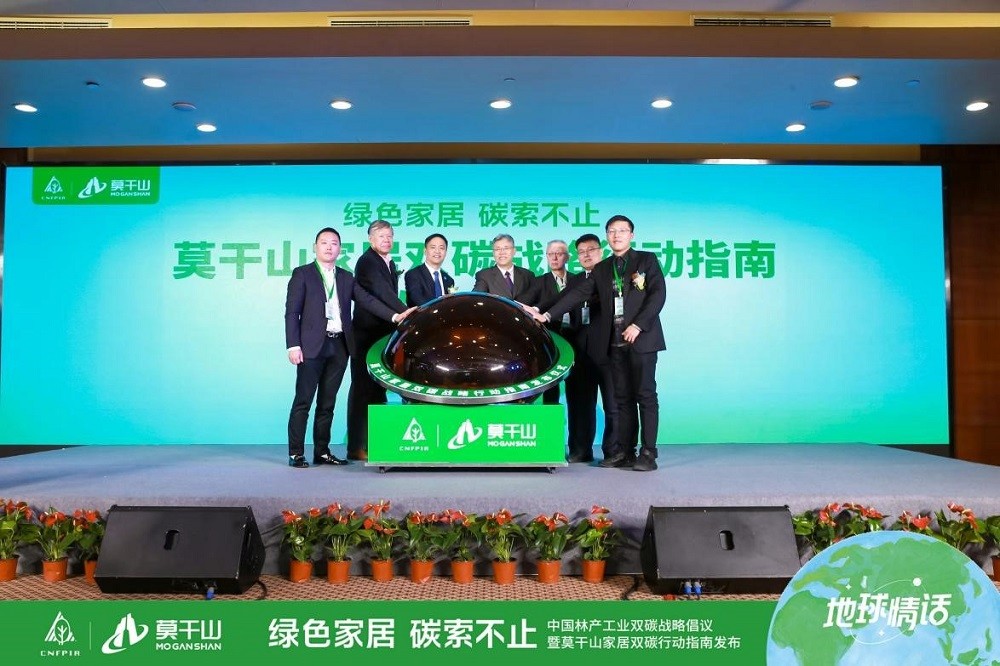 低碳綠色的高質(zhì)量發(fā)展浪潮中,對(duì)于恰逢其時(shí)的企業(yè)而言,面臨的是一場(chǎng)挑戰(zhàn),同時(shí)也是一場(chǎng)前所未有的機(jī)遇。作為雙碳戰(zhàn)略行動(dòng)的先行者、示范者、引領(lǐng)者,2023年11月19日,云峰新材率先召開“中國(guó)林產(chǎn)工業(yè)雙碳戰(zhàn)略倡議暨莫干山家居雙碳戰(zhàn)略行動(dòng)指南發(fā)布”,并提出:以國(guó)家碳達(dá)峰碳中和政策體系為指導(dǎo)思想,在2028年力爭(zhēng)實(shí)現(xiàn)二氧化碳排放達(dá)峰、2050年力爭(zhēng)實(shí)現(xiàn)運(yùn)營(yíng)邊界內(nèi)碳中和;堅(jiān)持“系統(tǒng)謀劃統(tǒng)籌推進(jìn)”、“轉(zhuǎn)型升級(jí)精準(zhǔn)脫碳”、“創(chuàng)新驅(qū)動(dòng)數(shù)智賦能”3項(xiàng)基本原則,并細(xì)化10個(gè)具體行動(dòng)任務(wù)。