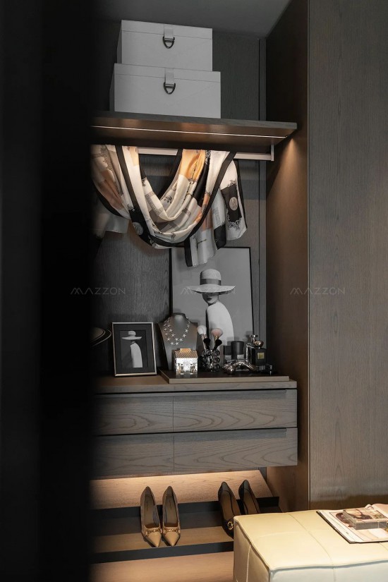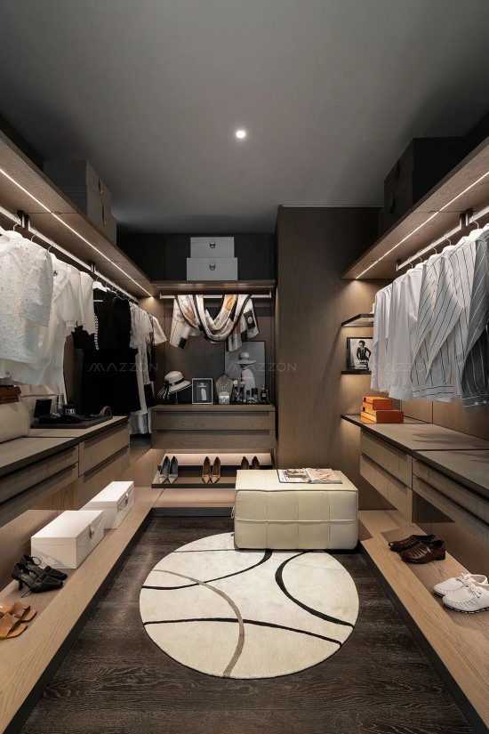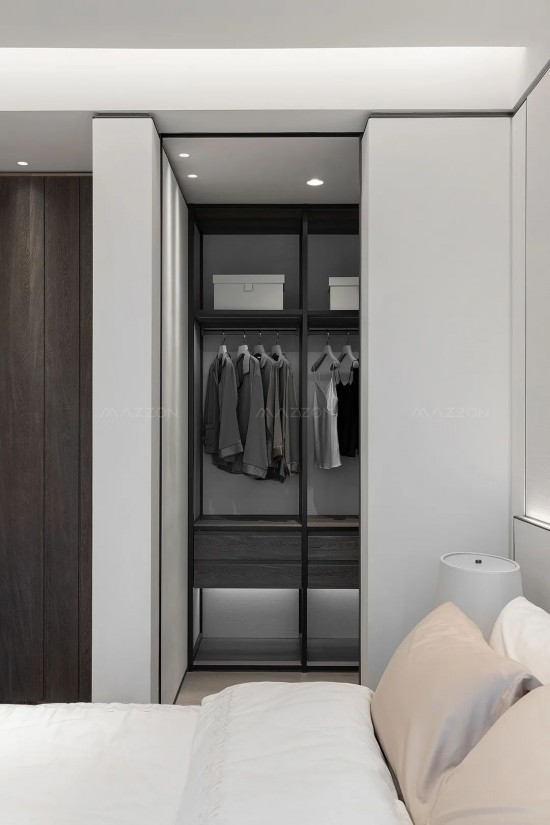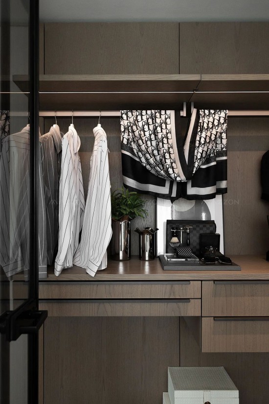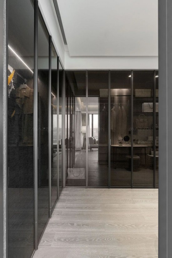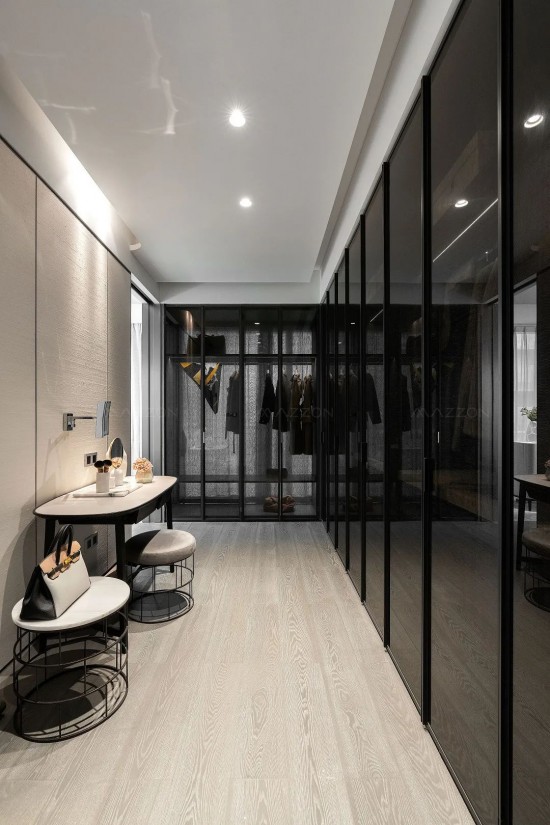 精致輕奢的衣帽間里,衣物整齊的擺放著。每天清晨起來,陽光透過玻璃折射進(jìn)來,一目了然的衣帽間,從容開啟每一天。