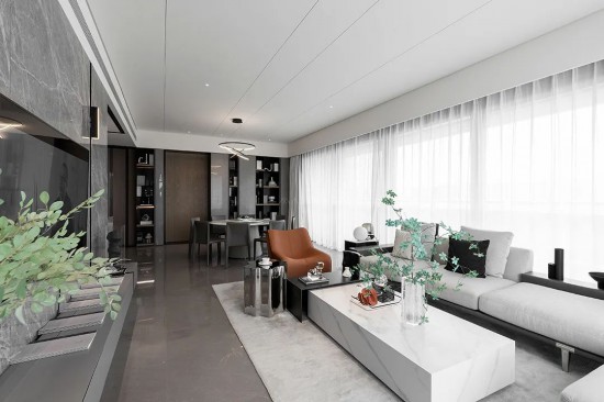 溫潤木質(zhì)搭配大理石,象征著劉先生的內(nèi)斂與自洽,“柔和的光線透過窗戶,窩在沙發(fā)里,沏上一杯淡淡的香茗,手捧一本沒看完的書,靜靜享受屬于自己的悠閑時(shí)光。”