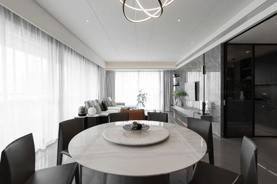 闊綽的客餐廳,舒適與私密兼得。這是周先生一家人最喜歡的一個(gè)空間,同時(shí)也是家人情感交流的樞紐。