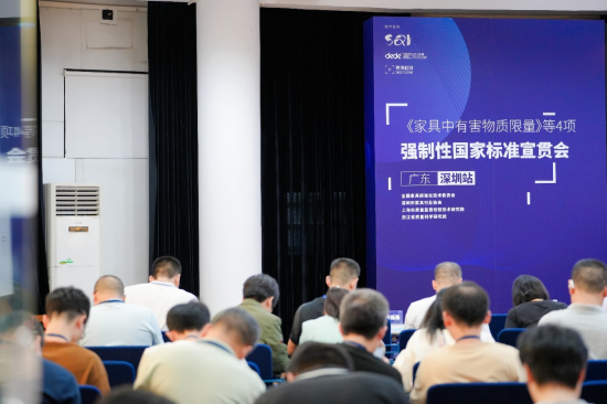 為保障產(chǎn)品安全、規(guī)范行業(yè)發(fā)展、支撐政府監(jiān)管,提升標(biāo)準(zhǔn)牽引作用,促進家具企業(yè)對標(biāo)達標(biāo),保障檢驗檢測精準(zhǔn)科學(xué),引領(lǐng)家具產(chǎn)業(yè)健康有序發(fā)展。全國家具標(biāo)準(zhǔn)化技術(shù)委員會聯(lián)合深圳市家具行業(yè)協(xié)會、上海市質(zhì)量監(jiān)督檢驗技術(shù)研究院、浙江省質(zhì)量科學(xué)研究院于2024年10月18日在深圳家具研發(fā)基地成功舉辦了4項家具強制性國家標(biāo)準(zhǔn)宣貫會。
