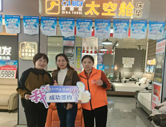 美國(guó)歐露絲太空艙床墊獨(dú)有的太空人品牌標(biāo)識(shí)吸引了大量客戶進(jìn)店體驗(yàn),每售出一張床墊都是為健康睡眠事業(yè)貢獻(xiàn)一份力量!