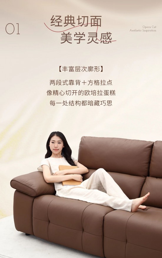 核心提示:經(jīng)典切面,美學(xué)靈感,豐富層次廓形,兩段式靠背十方格拉點,像精心切開的歐培拉蛋糕,每一處結(jié)構(gòu)都暗藏巧思。