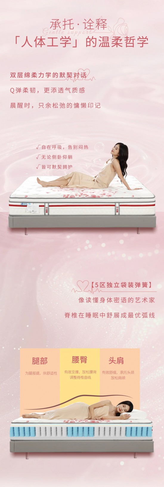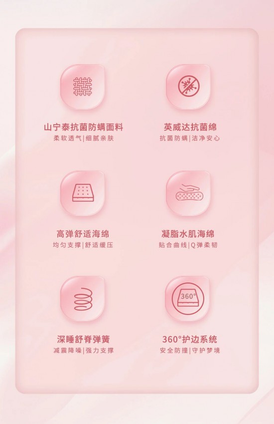 核心提示:雙層綿柔力學(xué)的默契對(duì)話,Q彈柔韌,更添透氣質(zhì)感,晨醒時(shí),只余松弛的慵懶印記。