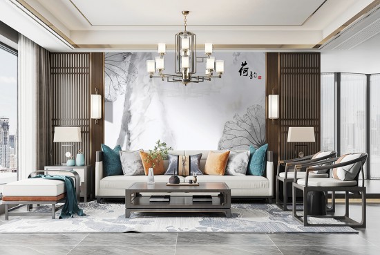 新中式客廳背景墻設(shè)計效果圖(下)